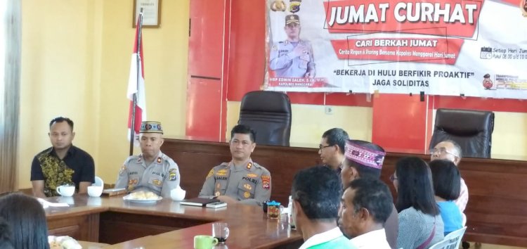 MANGGARAI,ikagawanews.id  – Aula Lantai 2 Polres Manggarai menjadi saksi kehangatan kegiatan rutin “Jumat Curhat Cari Berkah Jumat” yang dihelat pada hari Jumat kemarin. Dipimpin oleh Kapolres Manggarai, AKBP Edwin Saleh, S.I.K, M.H, kegiatan ini menjadi wadah bagi masyarakat untuk berinteraksi langsung dengan aparat kepolisian, 3 Mei 2024 .