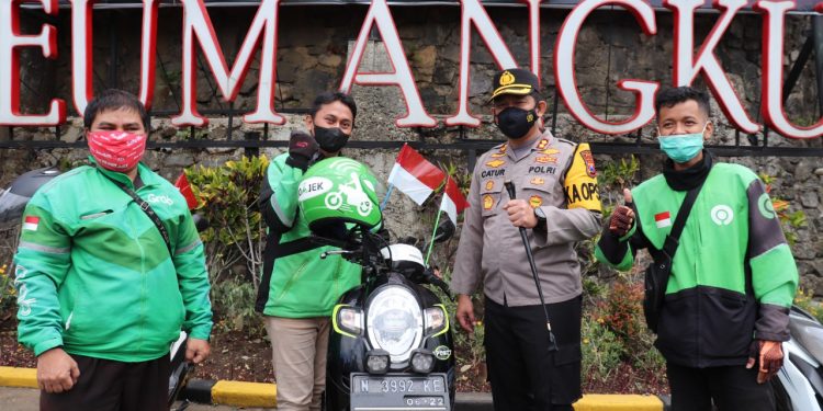 “Situasi memang tidak mudah. Tapi dengan kebijaksanaan pemerintah dan masyarakat, masa sulit ini akan terlewati. Bendera merah putih bisa jadi sebagai simbol perang melawan Covid 19. Sinergi antara pemerintah dengan masyarakat,”ujar Kapolres Batu di depan Musium Angkut . Minggu (1/8/21)