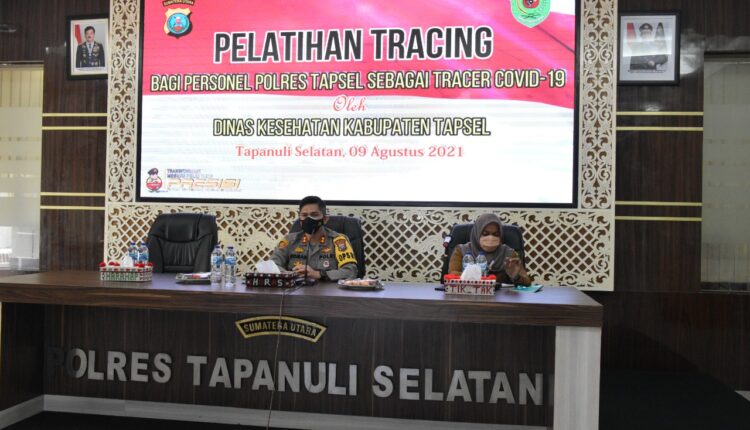 Tapanuli Selatan ,IKAGAWANEWS.ID – Menekan penyebaran kasus Covid-19, sebanyak 28 orang personil Polres Tapsel mendapat pelatihan tracing yang akan dipergunakan sebagai tenaga Tracer kasus Covid-19 di wilayah hukum Polres Tapsel.Pelatihan ini berlangsung di Aula Pratidina Polres Tapsel, Senin pagi (9/8/2021) sekira pukul 09.45 WIB dan dilatih dari tenaga Dinas Kesehatan Kabupaten Tapsel.