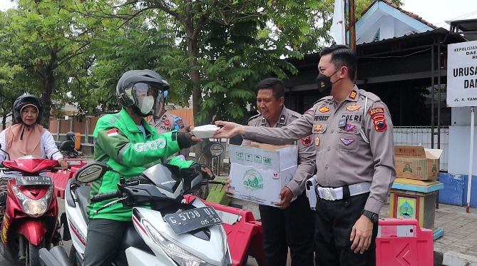 Kasat Lantas mengatakan, dia bersama anggotanya membagikan sebanyak 100 paket nasi kotak pada pengendara sepeda motor yang sedang melintas.