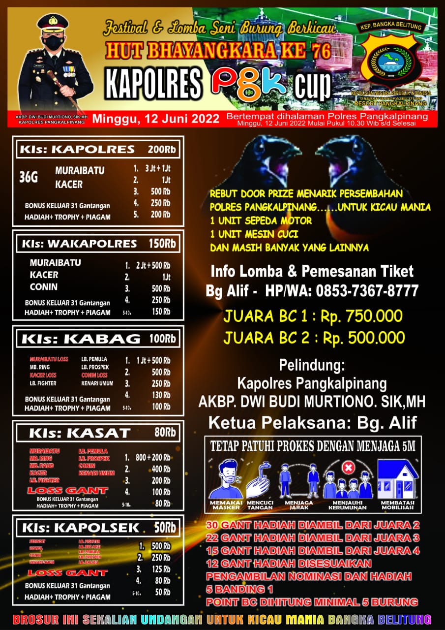 Segera Daftarkan Diri Anda di Festival dan Lomba Seni Burung Berkicau, “Kapolres PGK Cup 2022”, Dalam Rangka Hut Bhayangkara Ke 76