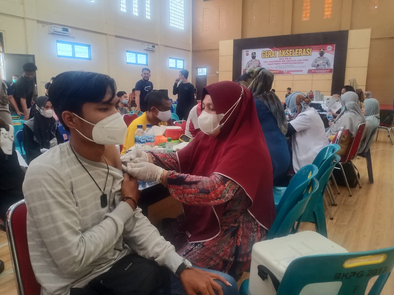 “Kalau hari lain kan kami belajar dan aktivitas kuliah lainnya. Kami sama kawan-kawan ada tujuh orang ikut vaksinasi di Polres Lhokseumawe, mulai dari antri pendaftaran, Scriming, vaksin dan Pcare atau input data yang sudah vaksin,” ujarnya.