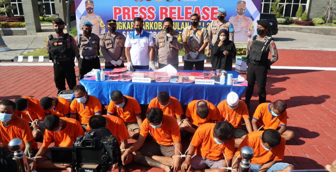 Gresik,ikagawanews.id – Polres Gresik berhasil menggagalkan peredaran narkoba demi melindungi generasi muda dari bahaya narkoba. Sebanyak 16 tersangka peredaran narkoba diamankan di Mapolres Gresik. Selasa (26-07-2022).