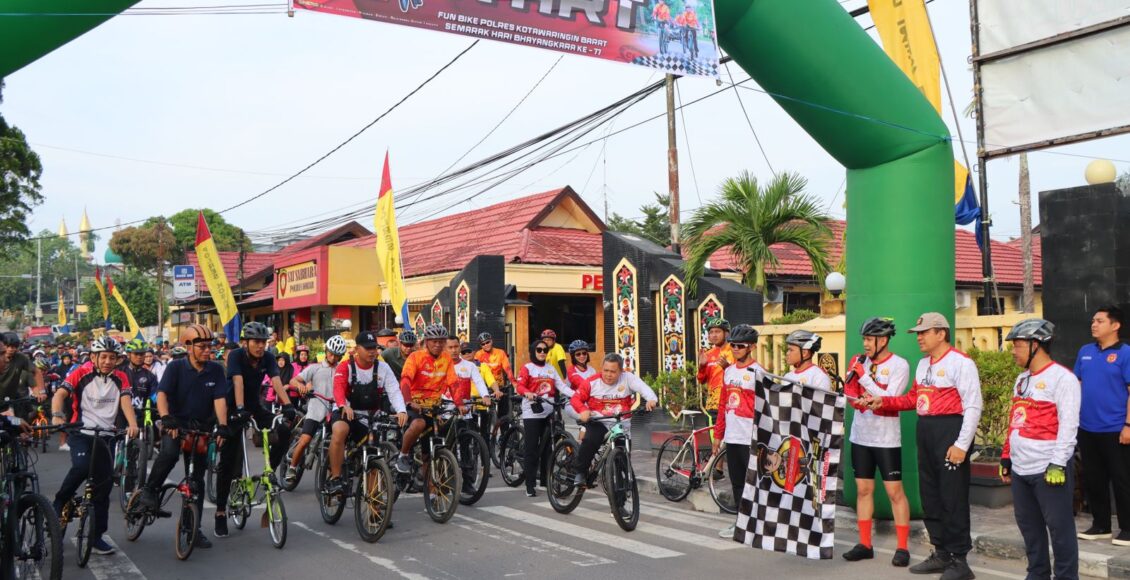 KOTAWARINGIN BARAT,ikagawanews.id – Polres Kotawaringin Barat telah melaksanakn kegiatan fun bike dalam rangka Semarak Hari Bhayangkara Ke-77 di Polres Kotawatingin Barat dengan Tema “Pemilu Damai Menuju Indonesia Emas”,Sabtu tanggal 03 Juni 2023 sekira jam 06.30 WIB .