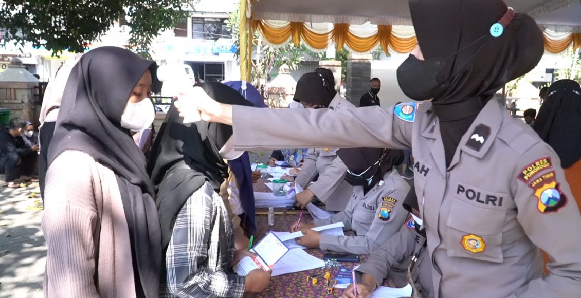 Kapolres Ponorogo AKBP Catur C. Wibowo yang diwakili oleh Kabag Ops Kompol Basuki beserta Kasat dan Kasi turut memonitor kegiatan serbuan vaksinasi untuk memastikan kegiatan berjalan dengan tertib dan lancar.