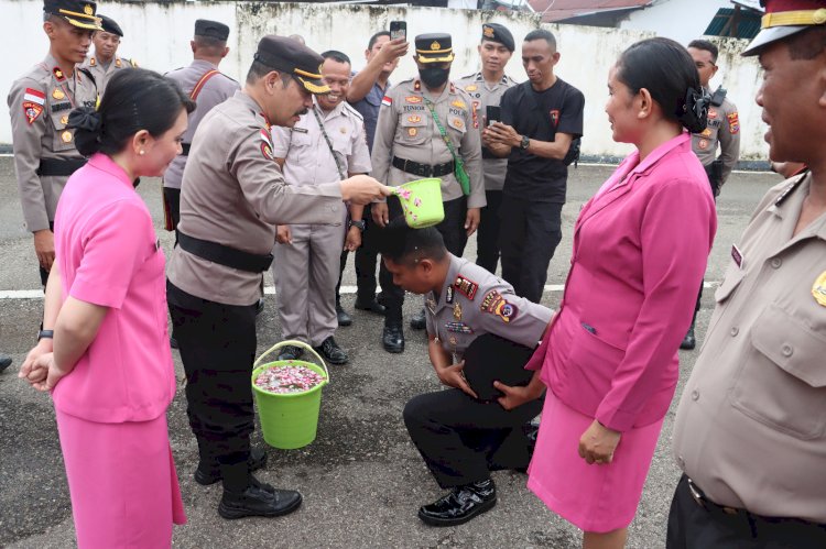 Usai pelaksanaan upacara, acara dilanjutkan dengan tradisi penyiraman air kembang oleh Kapolres Belu kepada 33 personel yang mendapat kenaikan pangkat.