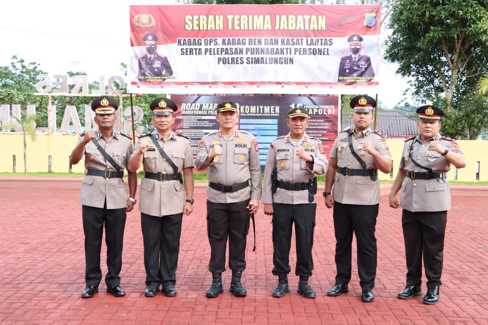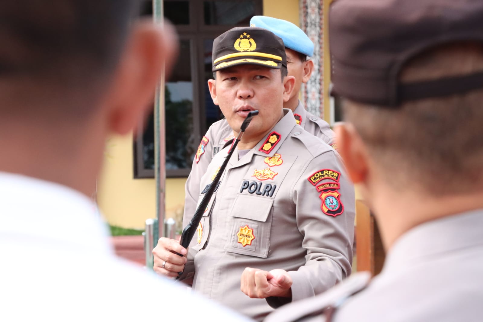 Tampak hadir mendampingi Kapolres Simalungun AKBP Ronald F.C Sipayung, S.H., S.I.K., M.H., Wakapolres Simalungun KOMPOL Efianto, SH., dan diikuti oleh Kabag Sumda Polres Simalungun KOMPOL Joner Purba., Kabag Log Polres Simalungun KOMPOL Gering Damanik, SH., Kabag Ops Polres Simalungun AKP Kristo Tamba, S.H., S.I.K., M.I.K., Kabag Ren Polres Simalungun KOMPOL Lamhot Siregar, SH., Kasubbag Renprogar Bag Ren AKP Resbon Gultom, SH.