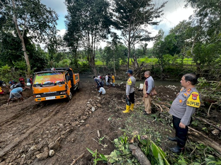 Setelah Upayakan Sumur Bor, Kapolres Belu Turunkan Alat Berat Perbaiki Jalan Rusak untuk Masyarakat Desa Tukuneno