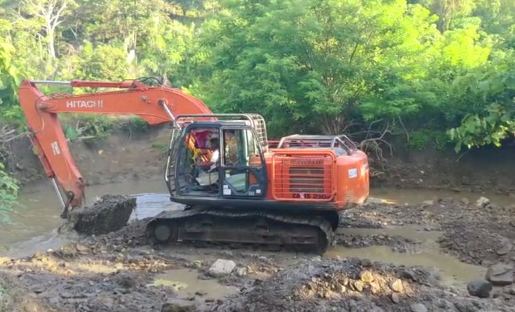 Tidak menunggu waktu lama, Kapolres Belu langsung mendatangkan alat berat berupa excavator serta truk pengangkut pasir dan sirtu (pasir batu) untuk memperbaiki jalan tani yang tertimbun dengan lumpur.