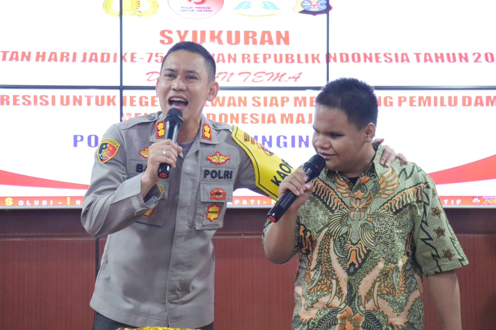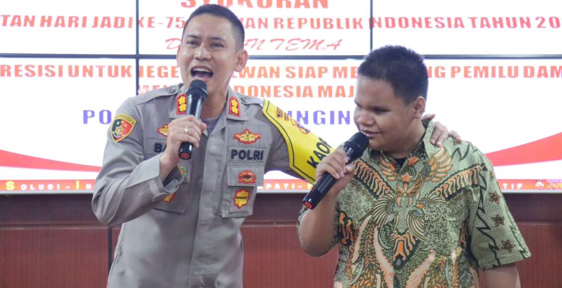 Dalam kegiatan ini juga, Kapolres duet bersama anaknda Rizky menyanyikan 2 buah lagu yang hits yaitu berjudul “Cikini ke Gondagdia dan Pergi Pagi Pulang Pagi” yang diikuti oleh para Polwan yang ikut berjoget ria.