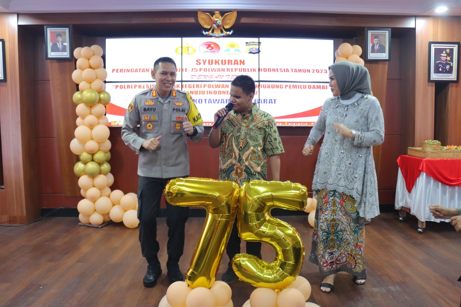 KOTAWARINGIN BARAT,ikagawanews.id – Setelah acara potong tumpeng dan penyerahan apresiasi kepada personel Polwan, Kapolres Kotawaringin Barat AKBP Bayu Wicaksono,SH.,SIK.,M.Si bersama Ketua Bhayangkari Cabang Kotawaringin Barat Ny.Wina Bayu Wicaksono beserta keluarga besar Polres Kotawaringin Barat menyaksikan penampilan Anaknda Rizky yang merupakan siswa SLBN 1 Pangkalan Bun yang membawakan beberapa lagu,Senin 4 September 2023 jam 09.10 Wib.