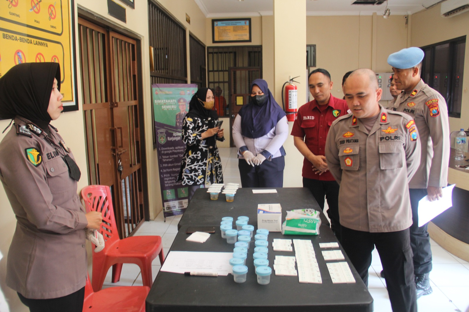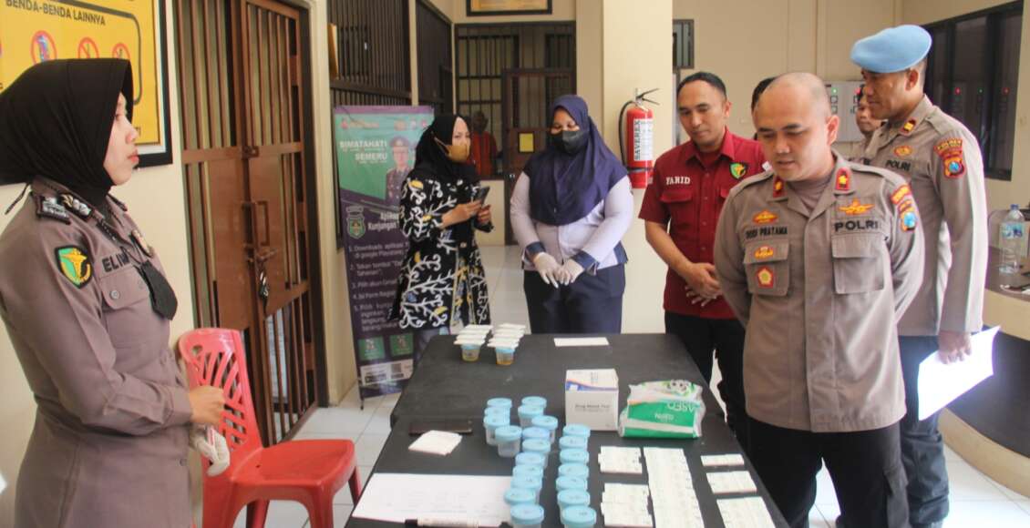Sidak Mendadak, Puluhan Tahanan Polres Kediri Kota Jalani Tes Urine