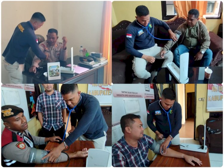 MANGGARAI,ikagawanews.id – Dalam rangka persiapan menyambut Operasi Lilin 2024, Pengamanan Hari raya Natal dan Tahun Baru (Nataru), Sidokkes Polres Manggarai melaksanakan kegiatan pemeriksaan dan pengecekan kesehatan bagi seluruh anggota Polres Manggarai. Kegiatan ini digelar pada Rabu, 18 Desember 2024, pukul 09.00 WITA di Ruang Kerja Anggota Polres Manggarai dan Klinik Polres Manggarai.
