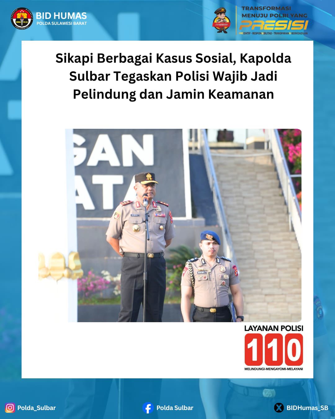 Sikapi Berbagai Kasus Sosial, Kapolda Sulbar Tegaskan Polisi Wajib Jadi Pelindung dan Jamin Keamanan