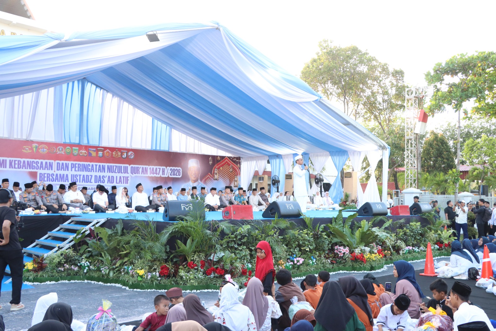 Dalam kegiatan tersebut, Kapolresta Barelang Kombes Pol Anggoro Wicaksono, S.H., S.I.K., M.H. mendampingi Kapolda Kepri Irjen Pol. Asep Safrudin, S.I.K., M.H., bersama Walikota Batam dan unsur Forkopimda mengikuti rangkaian kegiatan tausiyah kebangsaan yang disampaikan oleh Ustadz Dr. H. Das’ad Latif, S.Sos., S.Ag., M.Si., Ph.D., yang dikenal sebagai dai nasional dengan dakwah yang menyejukkan serta menguatkan nilai persatuan dan kebangsaan.