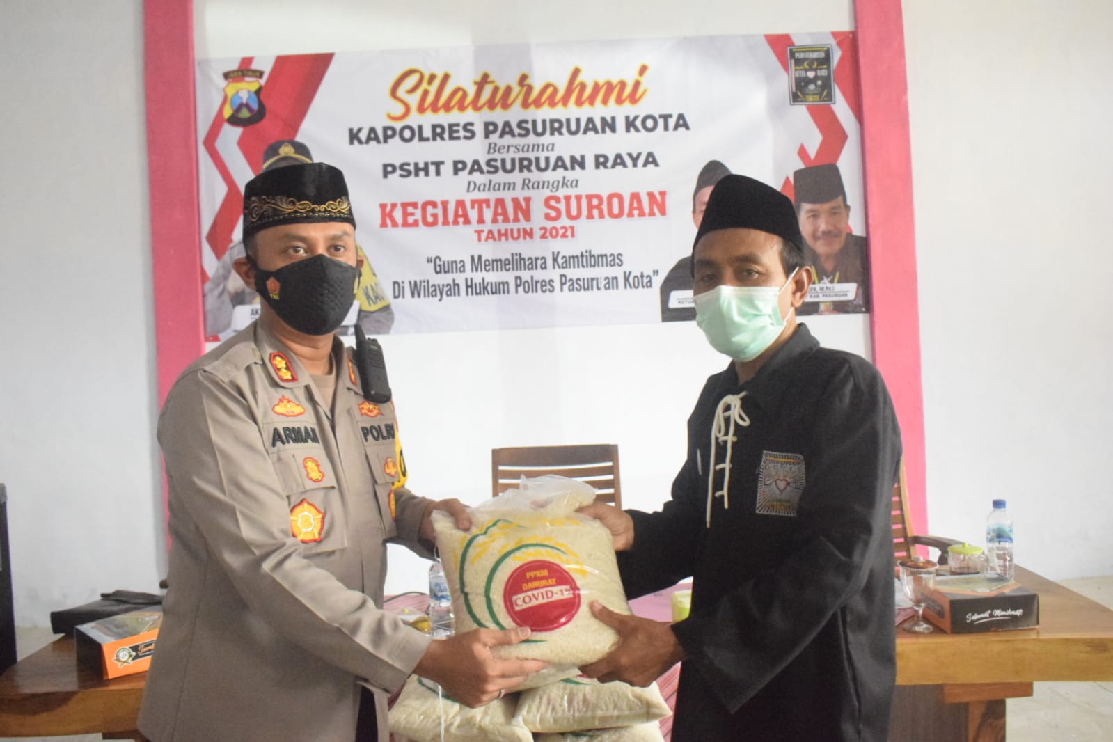 Kegiatan dilanjutkan dengan pemberian bantuan sosial kepada warga PSHT Kota dan Kab. Pasuruan berupa sembako beras 5 kg yang diberikan langsung oleh Kapolres Pasuruan Kota.(Red/Hum)