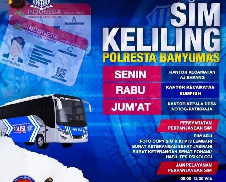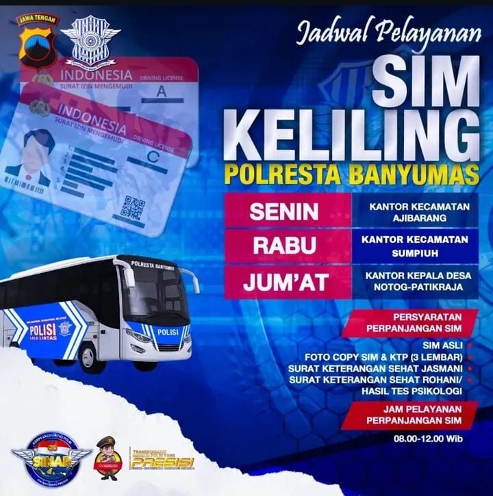 Berikut jadwal dan lokasi SIM Keliling Banyumas Oktober 2025 :