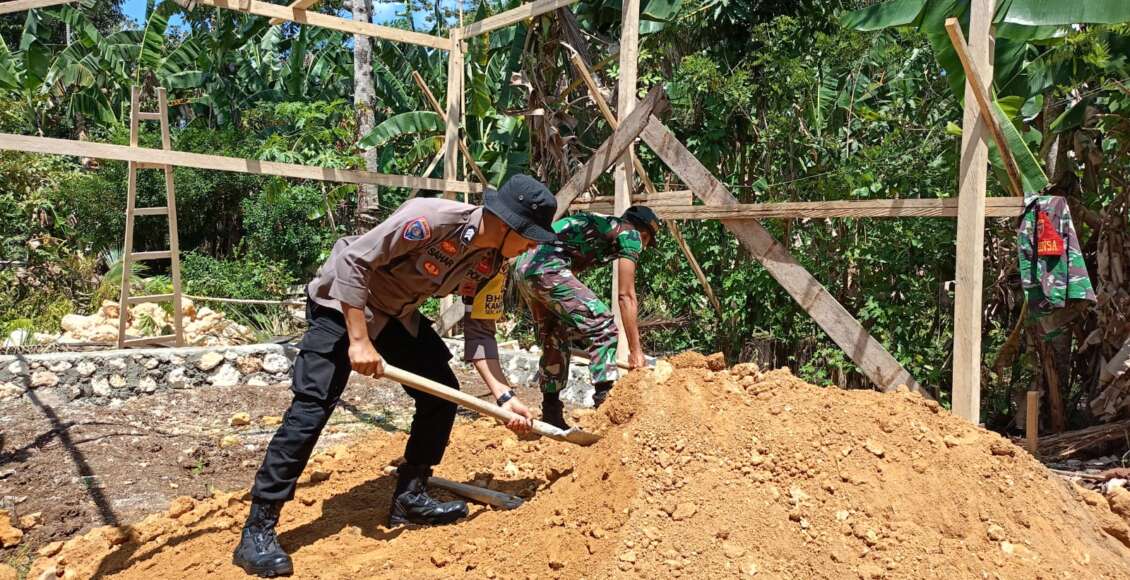 Bertempat di desa Pacing Kecamatan Awangpone Kabupaten Bone, personil Polsek Awangpone Polres Bone bersama dengan Babinsa dari Komando Rayon Militer Awangpone melaksanakan kegiatan membangun rumah milik salah satu warga yang kurang mampu.