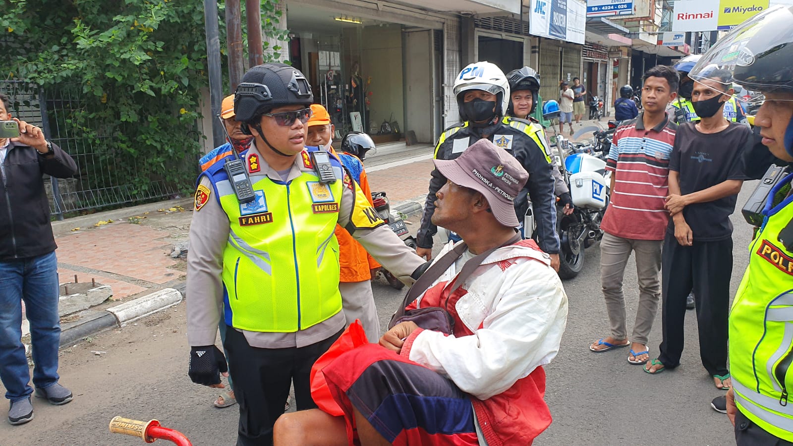 Sinergitas TNI-POLRI jajaran Polres Cirebon Kota, naik sepeda motor bagikan bansos pada warga