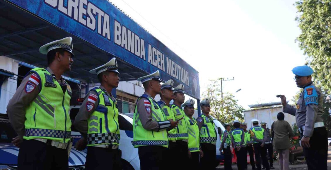 Didampingi Kasatlantas Polresta Banda Aceh Kompol Mawardi, Kanit Provost Ipda Miswar bersama personel melakukan pemeriksaan satu persatu kelengkapan personel sebelum melakukan penertiban masyarakat pengguna kenderaan bermotor.
