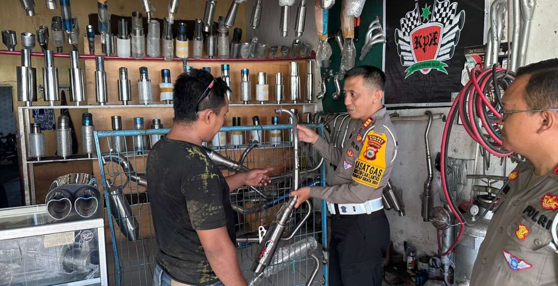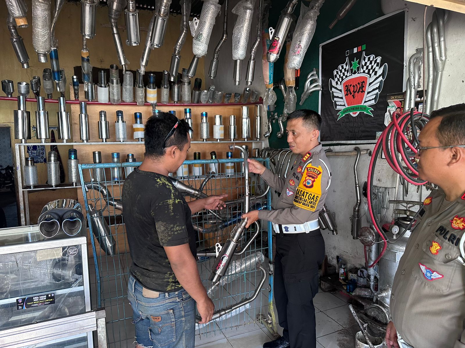 Kegiatan sosialisasi dilakukan dengan cara mendatangi toko dan bengkel sepeda motor sebagai upaya pencegahan terhadap penggunaan knalpot Brong yang dapat menghasilkan suara bising di jalan raya.
