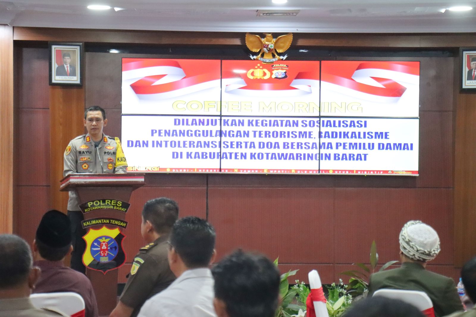 Kapolres menambahkan bahwa bahwa Terorisme, Radikalisme dan Intoleransi merupakan ancaman yang sewaktu-waktu dapat terjadi, sehingga diperlukan Sinergi yang kuat untuk melakukan pencegahan dini agar Kotawaringin Barat terhindar dari bahaya dimaksud, apalagi saat ini situasi Pemilu, berbagai issue bisa dijadikan bahan untuk menjatuhkan satu sama lainnya.