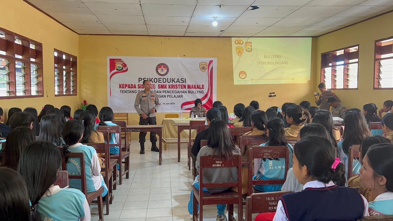 Terbaru, Jumat (14/06/2024), ratusan siswa SMK Kristen Makale Kecamatan Makale kabupaten Tana Toraja mendapatkan sosialisasi pencegahan bullying yang diselenggarakan oleh Bagian Sumber Daya Manusia Polres Tana Toraja.