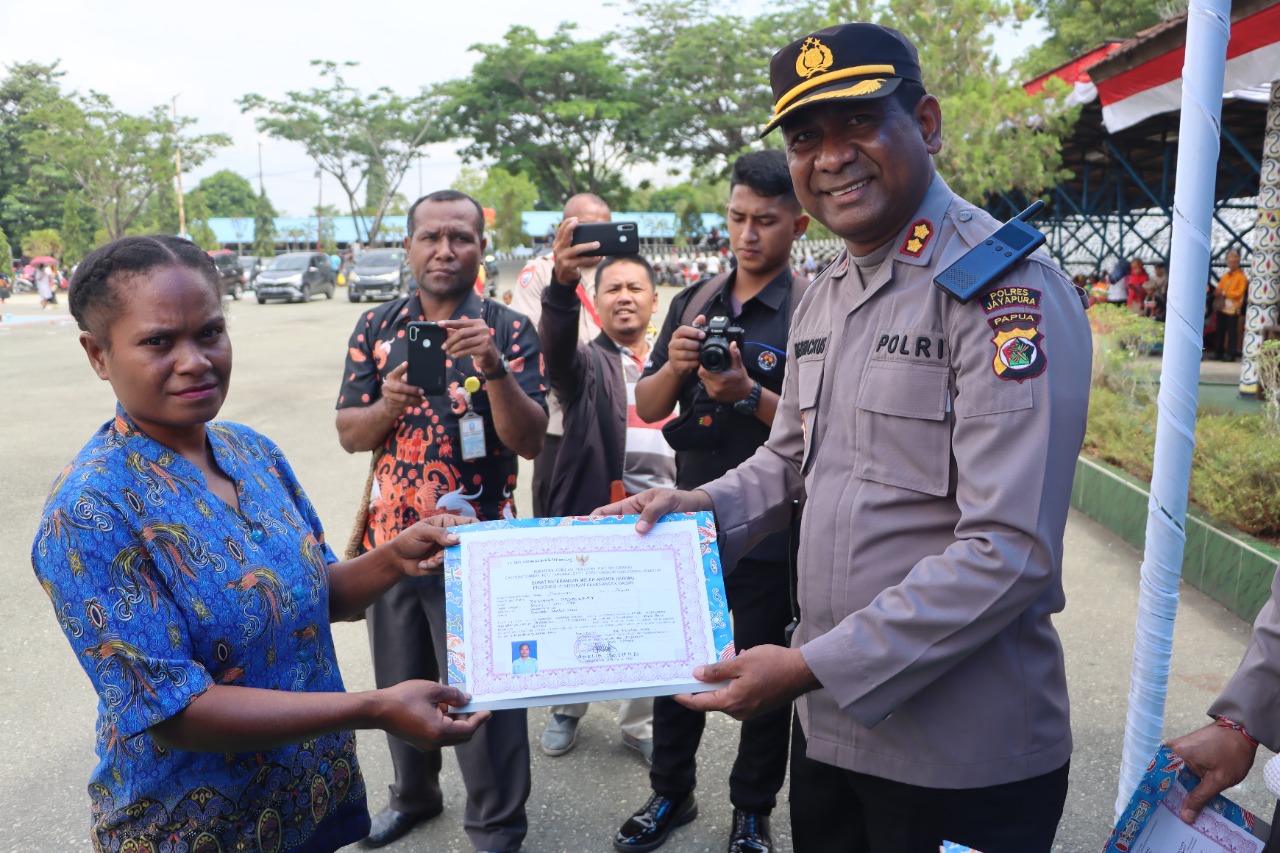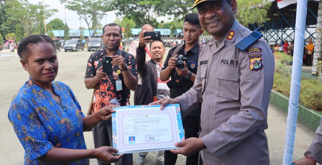 Setelah kurang lebih 6 bulan lamanya diajarkan membaca dan menulis oleh Bhabinkamtibmas maupun Polwan Polres Jayapura dilanjutkan dengan mengikuti ujian, dari 130 peserta didik, ada 12 orang peserta yang menerima sertifikat atau surat keterangan melek aksara, diserahkan langsung Kapolres Jayapura AKBP Fredrickus W.A Maclarimboen, S.IK., MH didampingi Wakil Bupati Jayapura Giri Wijayantoro, Kepala Dinas Pendidikan dan Pengajaran Kab. Jayapura Ted Mokay, saat peringatan Hari Aksara Internasional.