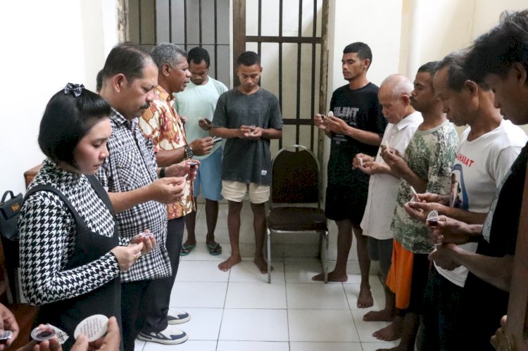 Momentum Perjamuan Kudus bersama para Tahanan yang saat ini menghuni Rumah Tahanan (Rutan) Polres Belu ini sebagai salah satu Rangkaian dari Perayaan Hari Raya Paskah yang murni inisiatif langsung dari Kapolres Belu bersama Istri.