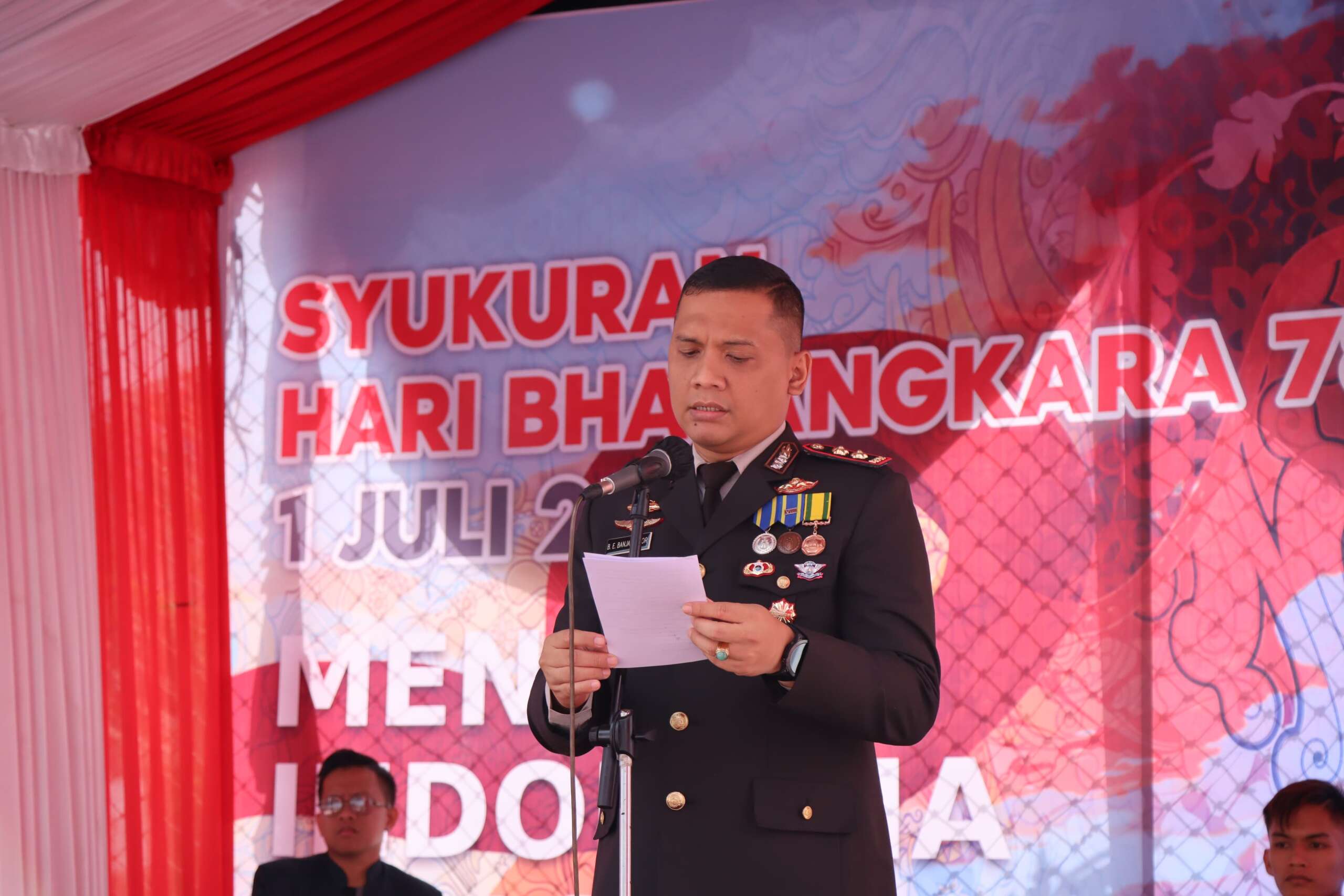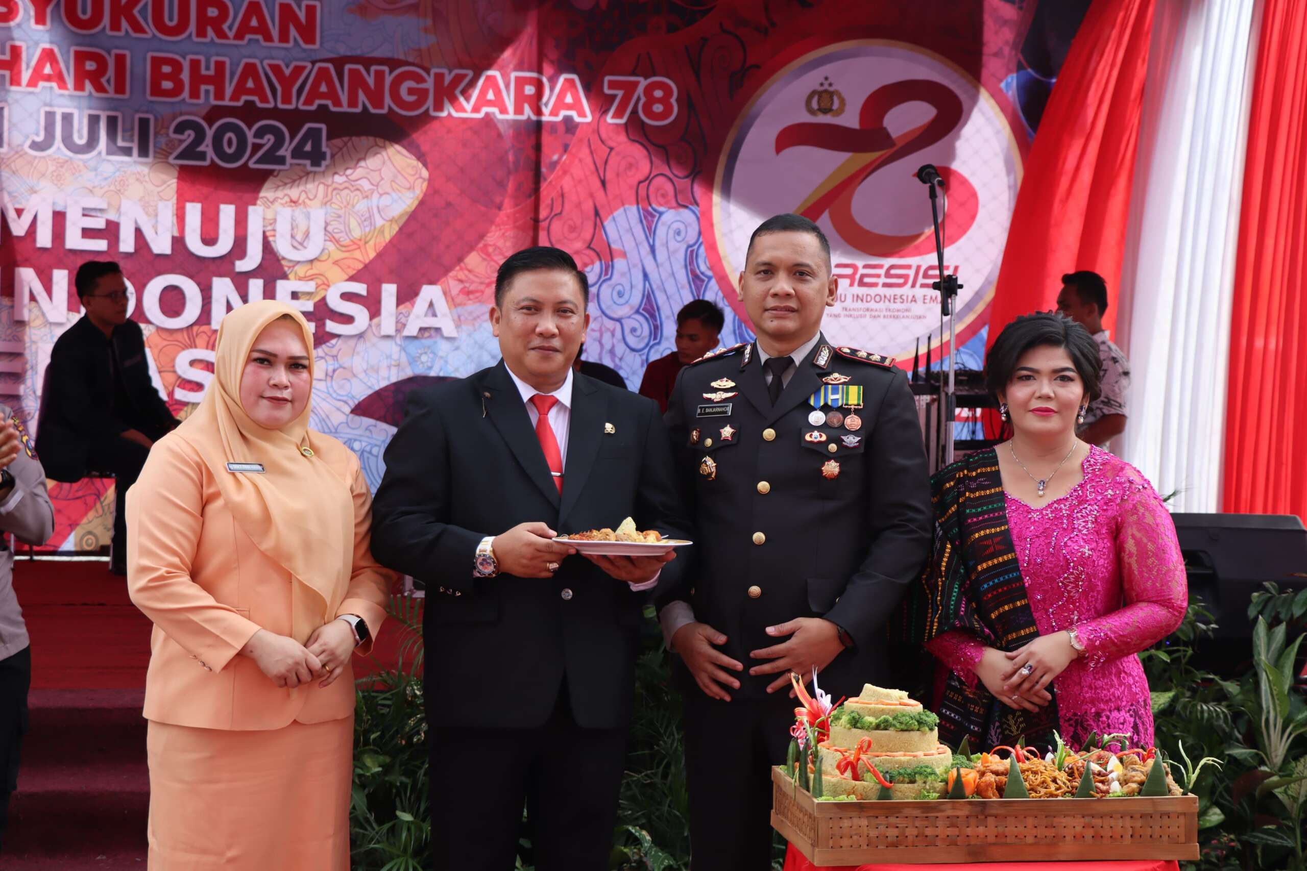 Syukuran HUT Bhayangkara 78 Polres Tapanuli Tengah dipimpin oleh Kapolres Tapanuli Tengah AKBP Basa Emden Banjarnahor, SIK, MH turut hadir Dandim 0211/ TT Lekol Infanteri Jon Patar Hasudungan Banjarnahor, Danlanal Sibolga Letkol Laut (P) Robiyanto, S.H., M.Tr.Hanla, Sekda Kab. Tapteng Dr. Erwin Hotmansah Harahap, S.STP, MM, Mewakili danrem Kasintel Korem Letkol Inf. Budi S, Wakil Ketua DPRD Kab. Tapteng Agus Fitriadi Panggabean, Mewakili Dansatradar 234 Sibolga Kadishar Kapten Lek. Andi Fauzi, Kepala Kejaksaan Sibolga diwakilkan oleh Kasi Intel Dedi Saragih, SH. MH, Kalapas Sibolga Indra Kesuma. A.MD.IP.,S.H.,M.H, Kakan Kemenag Tapanuli Tengah H. Julsukri M Limbong dan turut hadir Pejabat Utama Polres Tapteng, Ketua Bhayangkari Polres Tapanuli Tengah bersama anggota dan pengurus serta Purnawirawan dan Warakawuri Polri Polres Tapanuli Tengah.