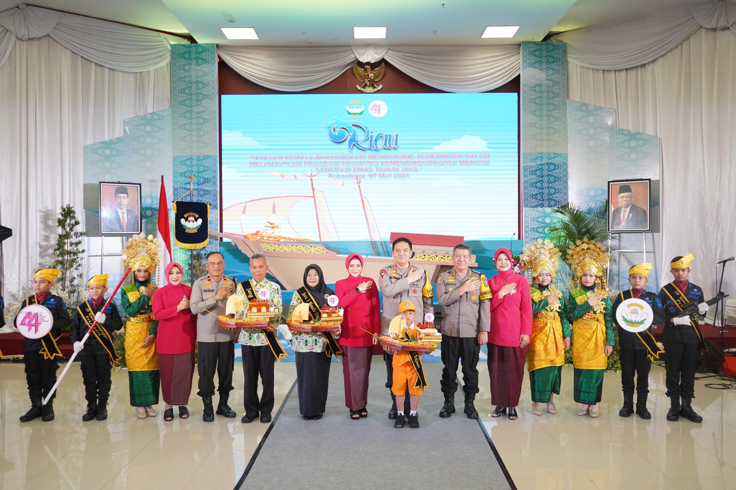 Pekanbaru,ikagawanews.id – Yayasan Kemala Bhayangkari Cabang Polda Riau menggelar acara puncak HUT yang ke-44 dengan syukuran bertajuk “Yayasan Kemala Bhayangkari Mendukung Pemerintah dalam Melanjutkan Program Prioritas Kemendikbudristek Menuju Generasi Emas Tahun 2045”. Acara ini diselenggarakan pada Selasa pagi, 7 Mei 2024, di Aula Tribrata Polda Riau.