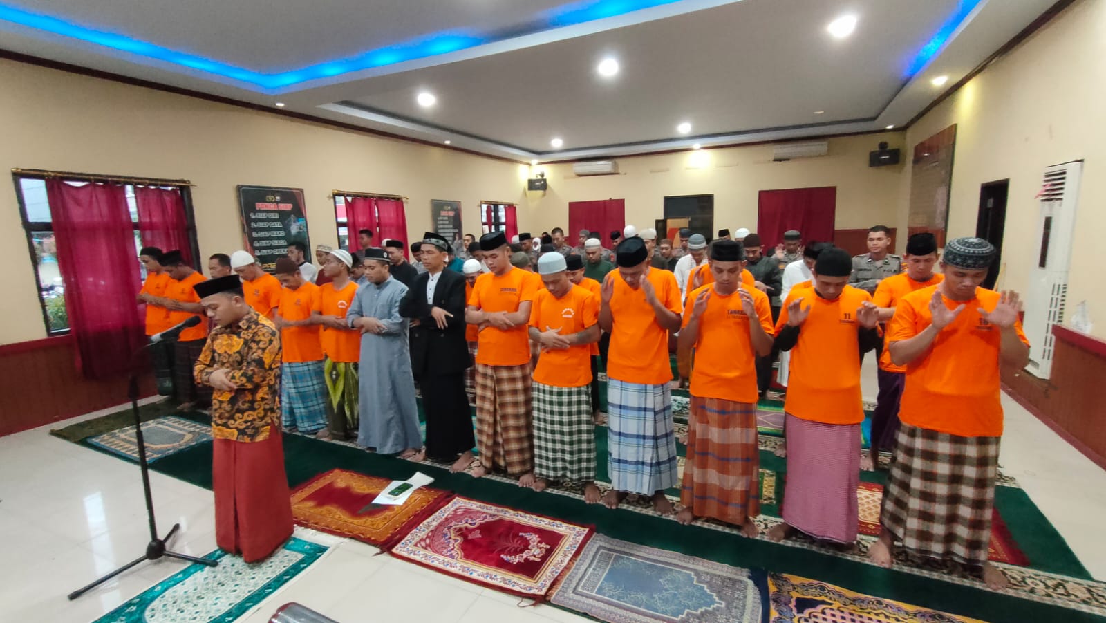 Para tahanan melaksanakan shalat Idul Fitri dua rakaat dipimpin oleh salah satu tahanan, AJWAN, S.Hum, M.Pd, yang merupakan imam dalam kasus pelecehan. Khutbah Idul Fitri disampaikan oleh Ustads BRIPKA Muhammad Arafah, dengan tema “Jadikan Momentum Idul Fitri untuk Merubah Diri ke Arah yang Lebih Baik”.