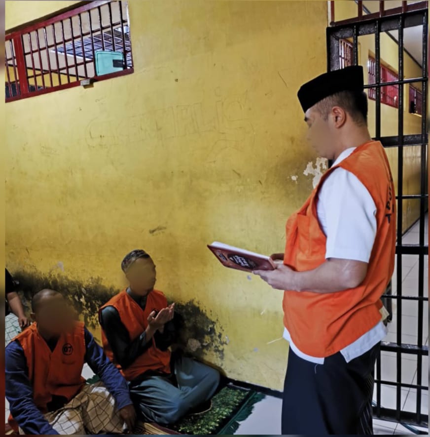 Seperti hari ini, Senin (13/5/2024) setelah pelaksanaan Sholat Azhar secara berjamaah diruang tahanan dilanjutkan dengan pembacaan ayat ayat Al-Qur’an dan Hadist beserta artinya secara bergantian dihadapan para tahanan.