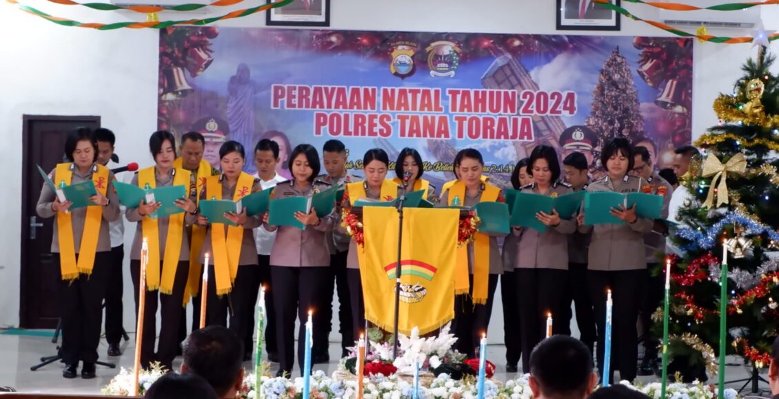 TANA TORAJA,ikagawanews.id  – Tim Paduan Suara Polres Tana Toraja berhasil mencuri perhatian dan mendapatkan pujian dari tamu undangan yang hadir, dengan penampilan memukau saat tampil pada perayaan Natal 2024 Polres Tana Toraja di Aula Bhayangkara Wicaksana Laghawa Mapolres Tana Toraja beberapa waktu lalu.