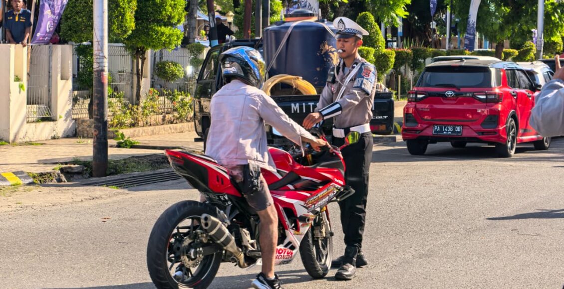 Kegiatan yang dipimpin oleh Kanit Turjawali Satlantas Polresta Jayapura Kota, Ipda Gunther Maspaitella bersama personel dengan dilaksanakan secara humanis dengan mengedepankan pendekatan persuasif kepada masyarakat berupa teguran dan bukan sanksi tilang namun pelanggar yang menggunakan knalpot brong harus di lepas di tempat.
