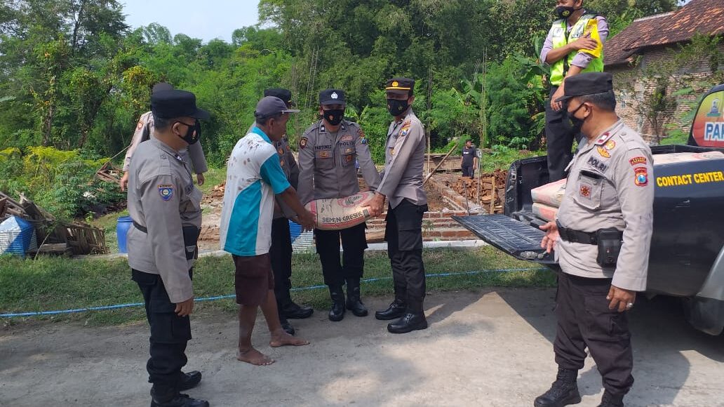 “Sesuai perintah bapak Kapolres, kami menyalurkan bantuan kepada saudara Supriyanto yang rumahnya terdampak tanah longsor berupa 15 sak semen,”kata Iptu Rosyid Effendi .