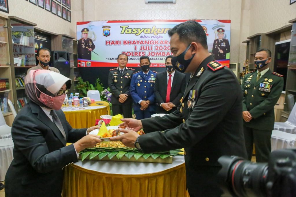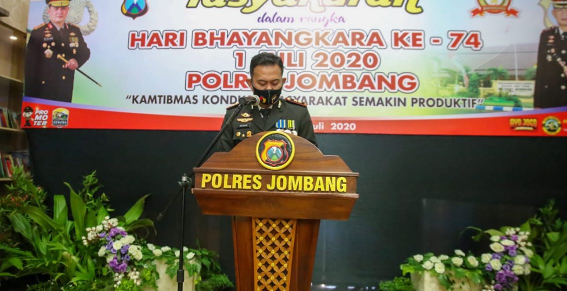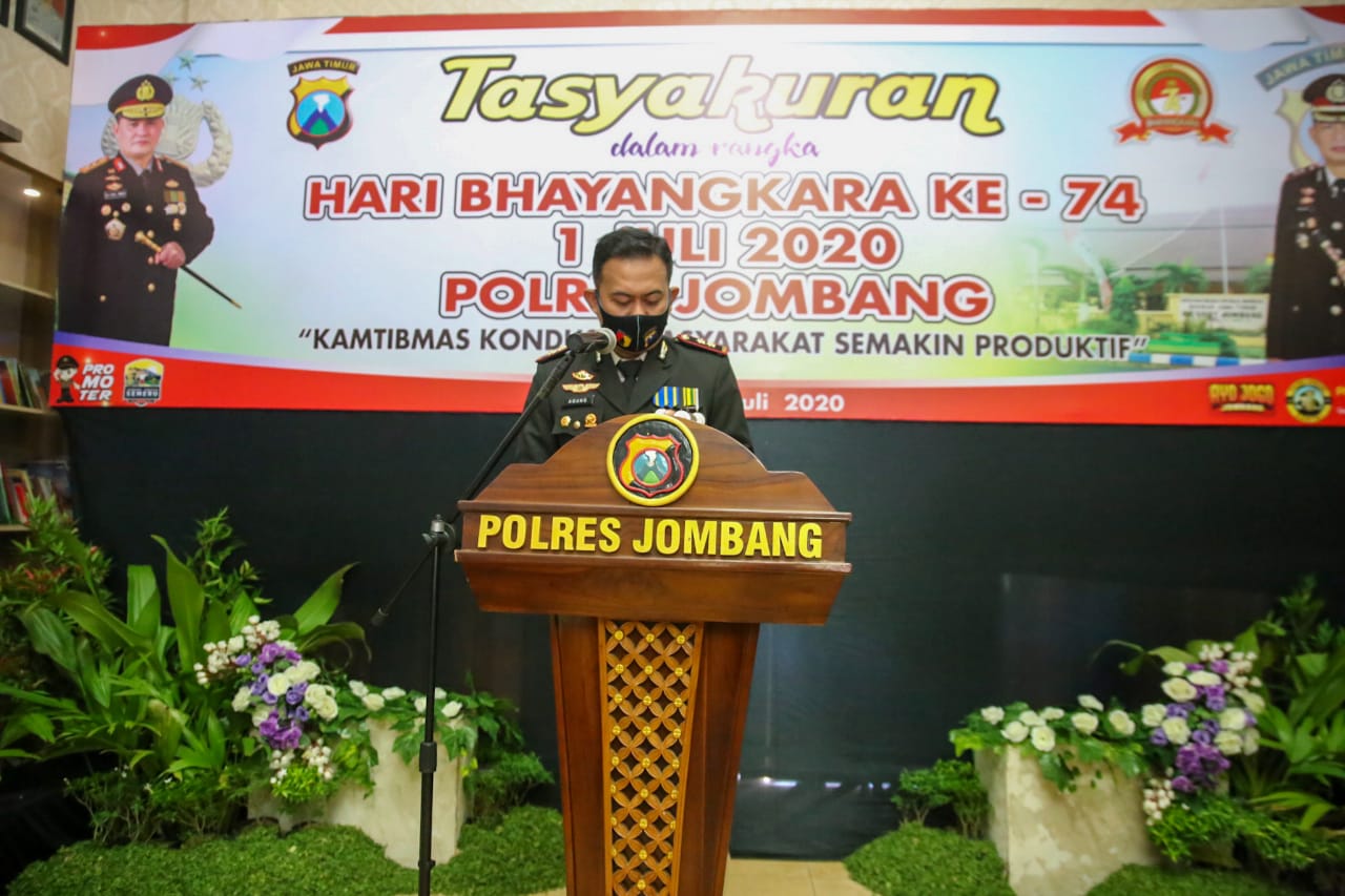 JOMBANG.IKAGAWANEWS.ID – Polres Jombang menggelar Tasyakuran HUT Bhayangkara ke 74 tahun 2020 dengan tema Kamtibmas Kondusif Masyarakat Semakin Produktif di Lobby Mapolres Jombang , Rabu 01 Juli 2020 pukul 09.00 Wib.