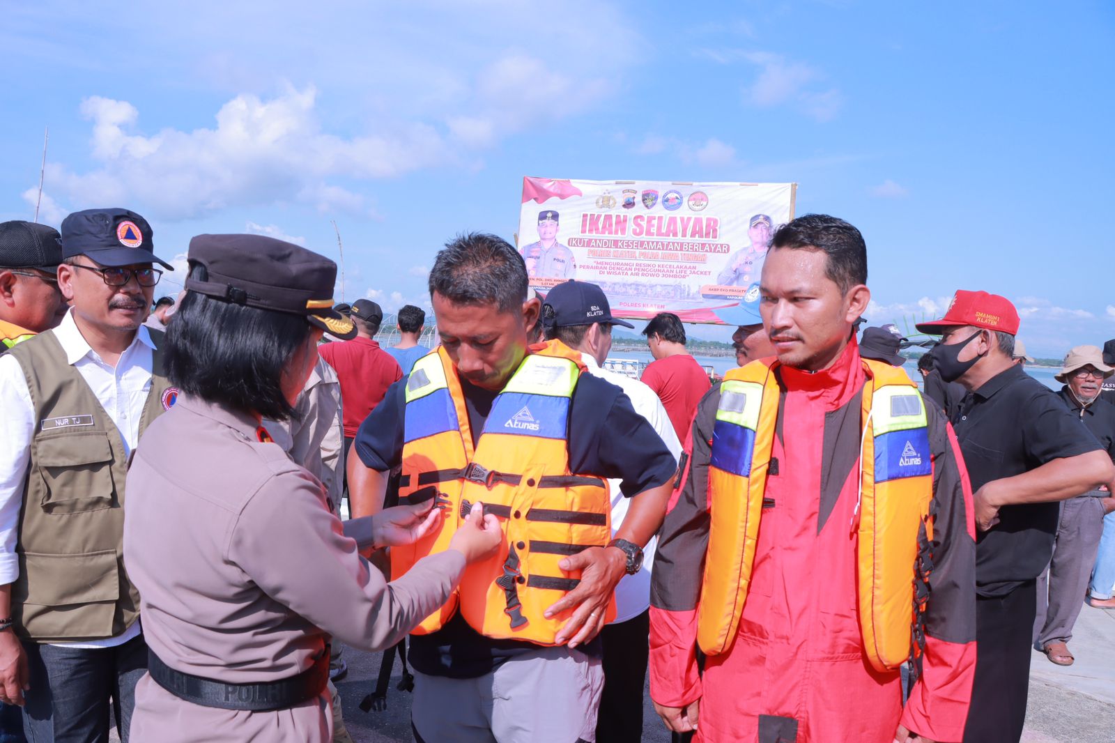 Dalam kesempatan tersebut Kompol Tri Wakhyuni SAP MM menyerahkan bantuan 20 life jacket. 15 diserahkan kepada pengelola wisata air dan 5 diserahkan kepada relawan. Pembagian life jacket ini dimaksudkan untuk menekan angka kecelakaan di wilayah perairan sekaligus untuk mendorong kesadaran masyarakat terkait keselamatan saat beraktifitas di perairan.