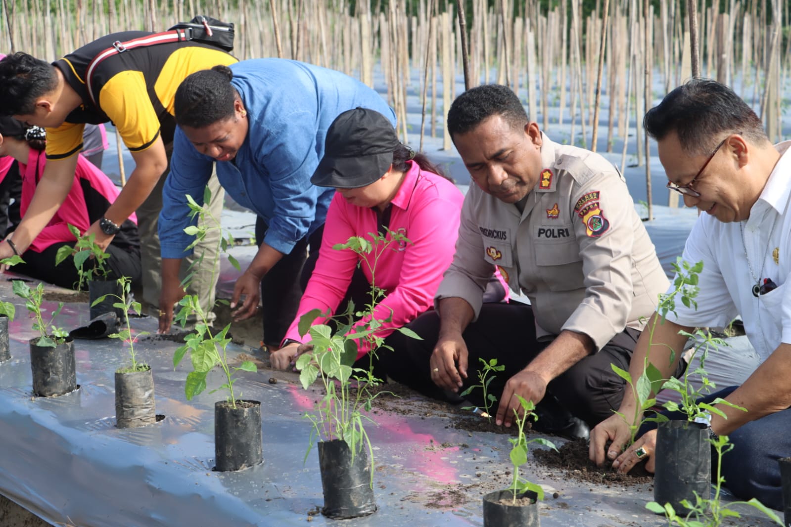 Tekan Inflasi di Daerah, Polres Jayapura Bersama Pemda Tanam Ratusan Bibit Cabai