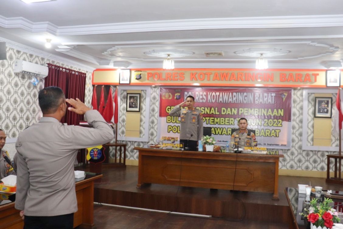 KOTAWARINGIN BARAT,ikagawanews.id – Kapolres Kotawaringin Barat AKBP Bayu Wicaksono,SH.SIK.M.Si memimpin pelaksanaan Gelar Opsnal dan Pembinaan Bulanan di Aula Satya Haprabu,Senin 19 September 2022.