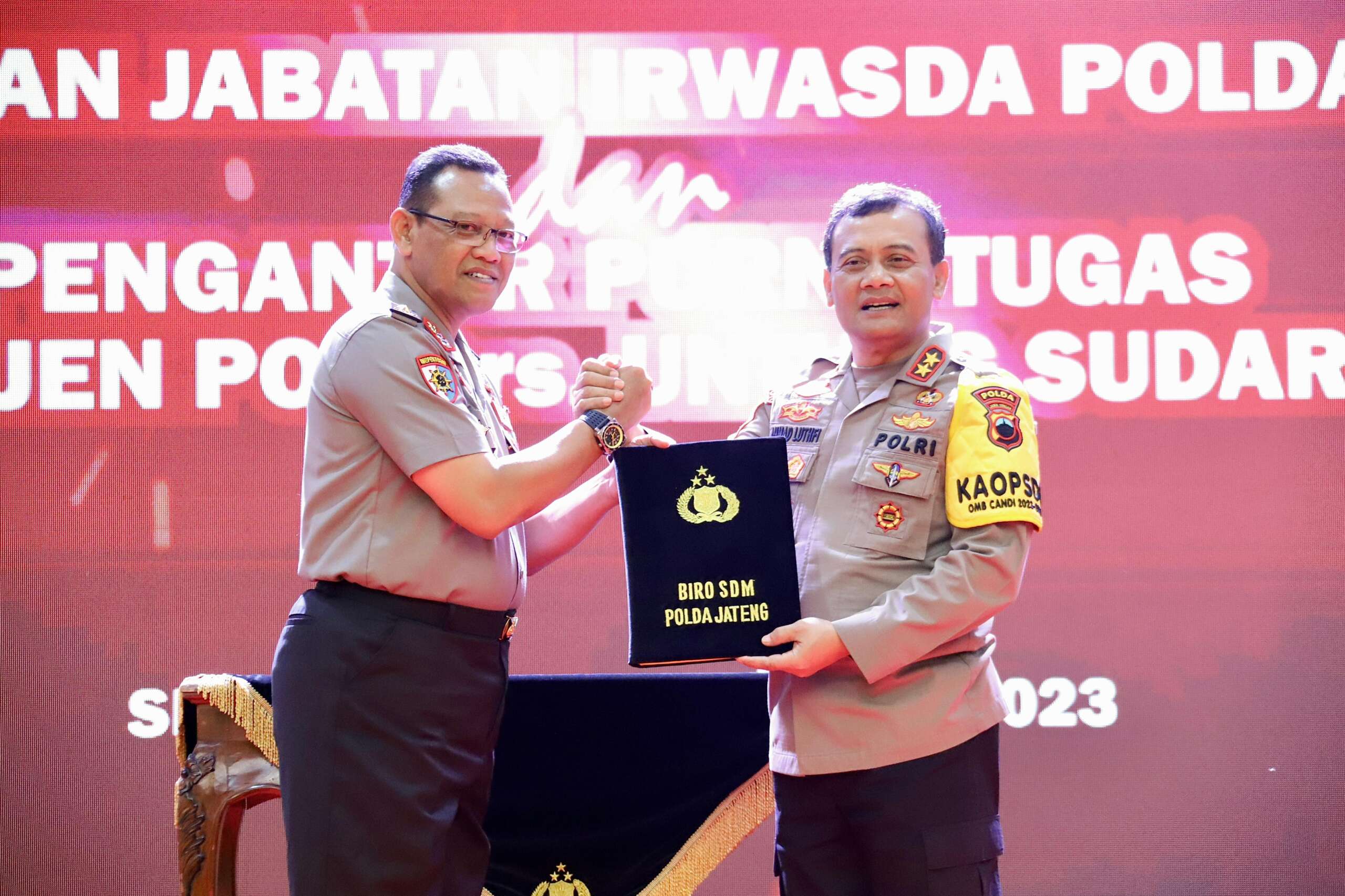 “Terhitung tanggal 1 Desember 2023 ini Brigjen Pol Drs. Untung Sudarto telah menyerahkan Jabatan Irwasda Polda Jateng kepada Kapolda Jateng Irjen Pol Drs. Ahmad Lutfhi, S.H., S.St.M.K., karena telah tiba masa purna tugasnya,” kata Kombes Pol Satake Bayu, Selasa (5/12/2023)
