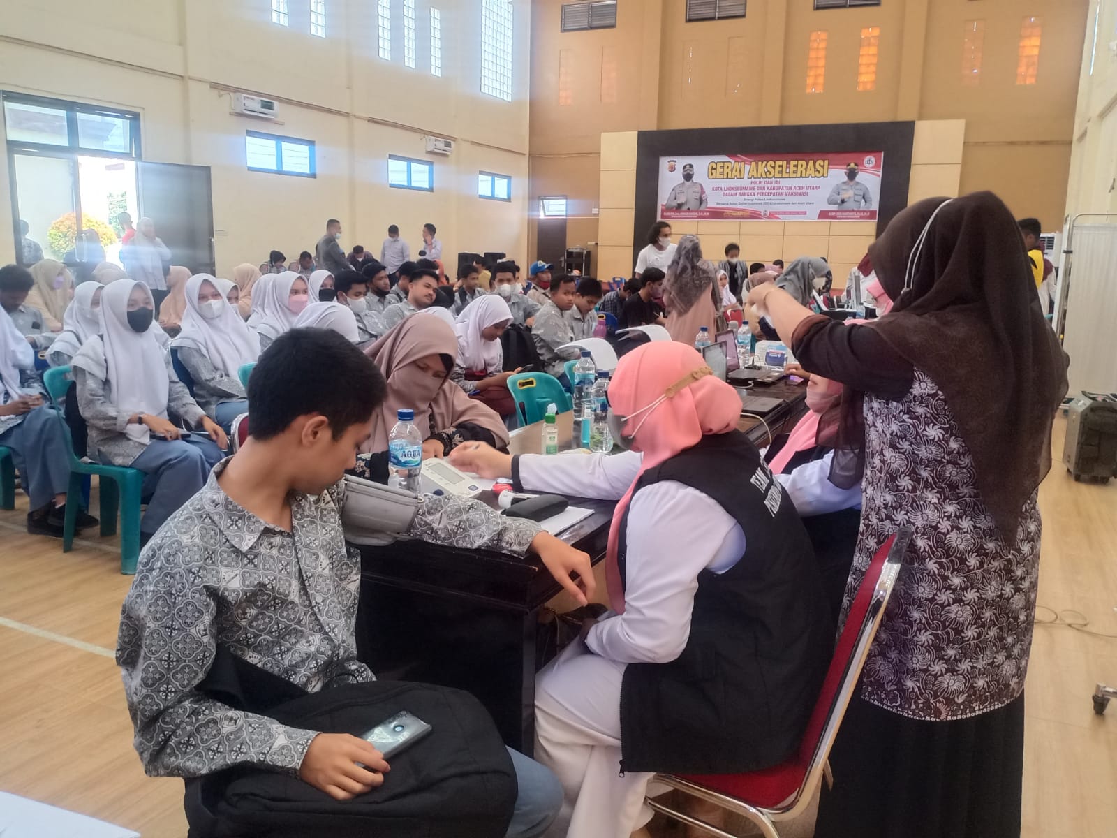 LHOKSEUMAWE,ikagawanews.id – Tidak terpengaruh isu hoaks, puluhan siswa SMK Negeri 1 Lhokseumawe datangi gedung serbaguna Wira Satya Mapolres Lhokseumawe untuk ikut vaksinasi, Kamis (14/10/2021).