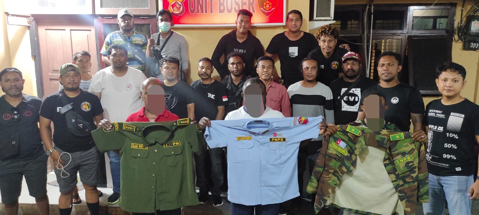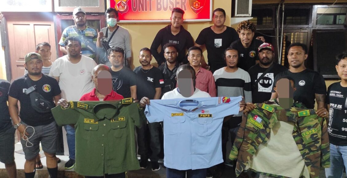Lanjut Kapolres, Ketiga pelaku yang diamankan berinisial YB (42), MOS, dan EW (58) yang diduga memiliki peran penting sebagai Staf KASAD NRFPB , Sekertaris Negara NRFPB dan Penasihat Presiden NRFPB, ” Polisi juga berhasil mengamankan barang bukti seragam loreng TNPB dan 2 seragam PNBP lengkap dengan atribut dari ketiga pelaku makar tersebut, “jelasnya.