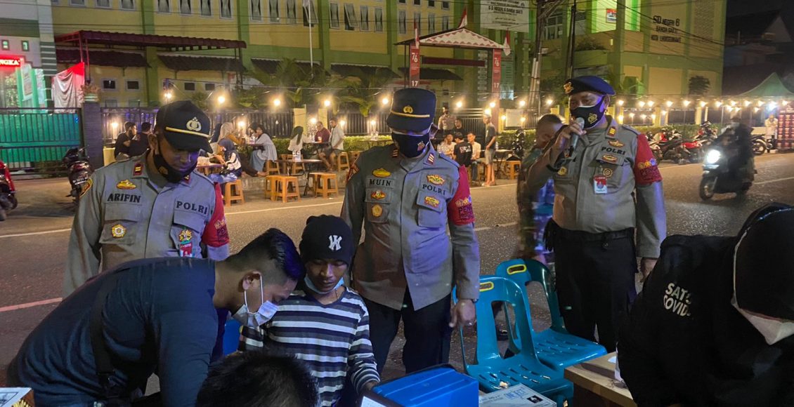 “Tim gabungan memberikan himbauan dan pengecekan kartu vaksin Kepada masyarakat yang sedang melaksanakan kegiatan malam di seputaran pelaksanaan vaksinasi keliling. Kemudian, petugas gabungan menjelaskan tentang vaksin sangat aman dan halal serta manfaatnya untuk kesehatan,” ujarnya.