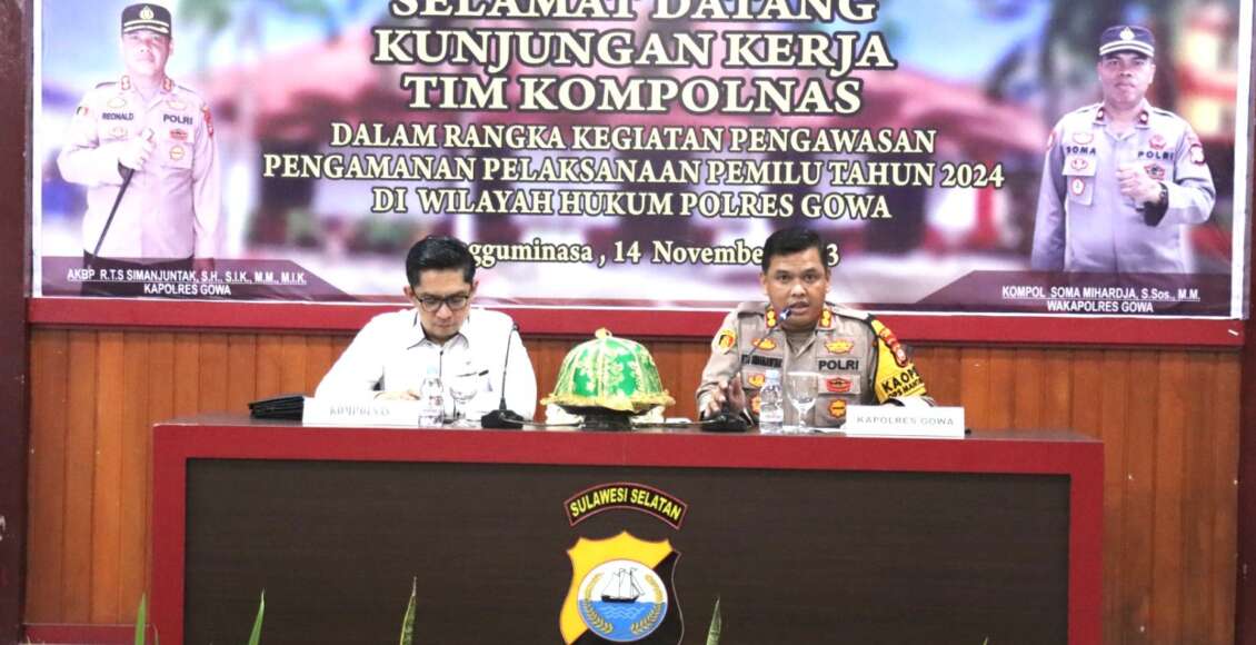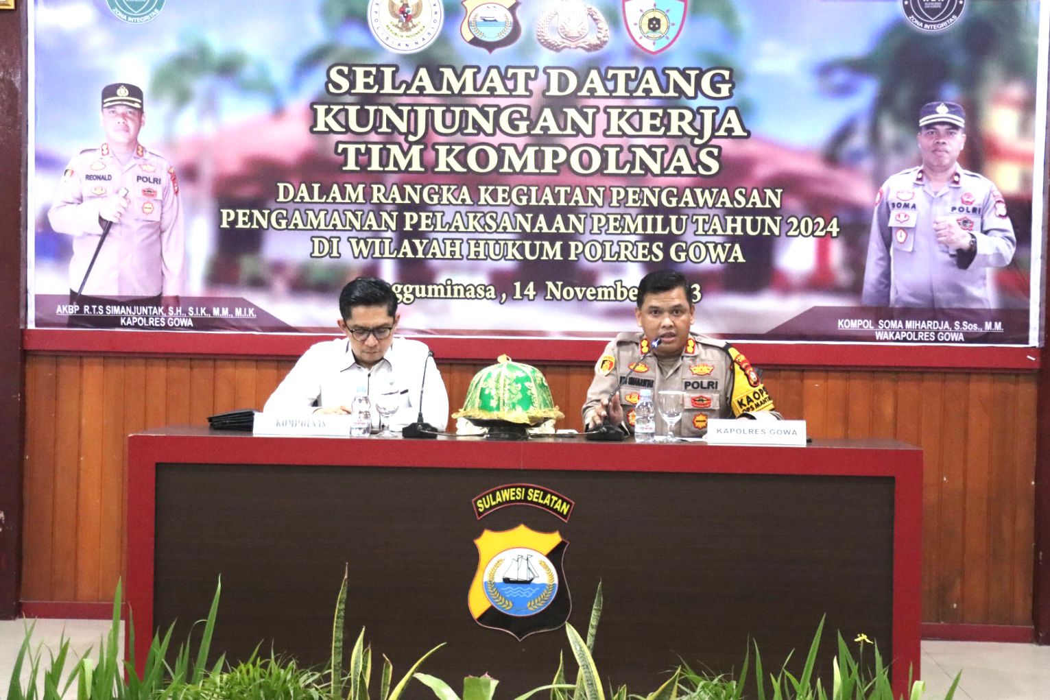 Kapolres Gowa, AKBP R.T.S Simanjuntak, mengapresiasi kehadiran Tim Kompolnas RI dan menegaskan kesiapan Polres Gowa dalam menjaga keamanan selama proses Pemilu. “Kami siap bekerja sama dan melaksanakan tugas dengan profesionalisme demi kelancaran pelaksanaan Pemilu di wilayah ini,” kata Kapolres.