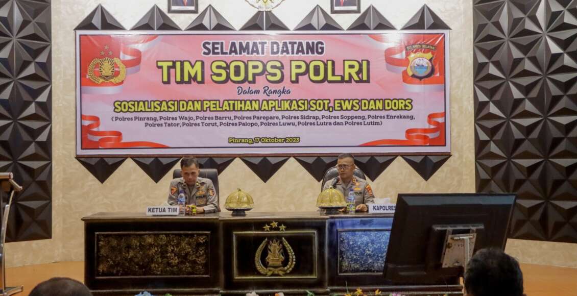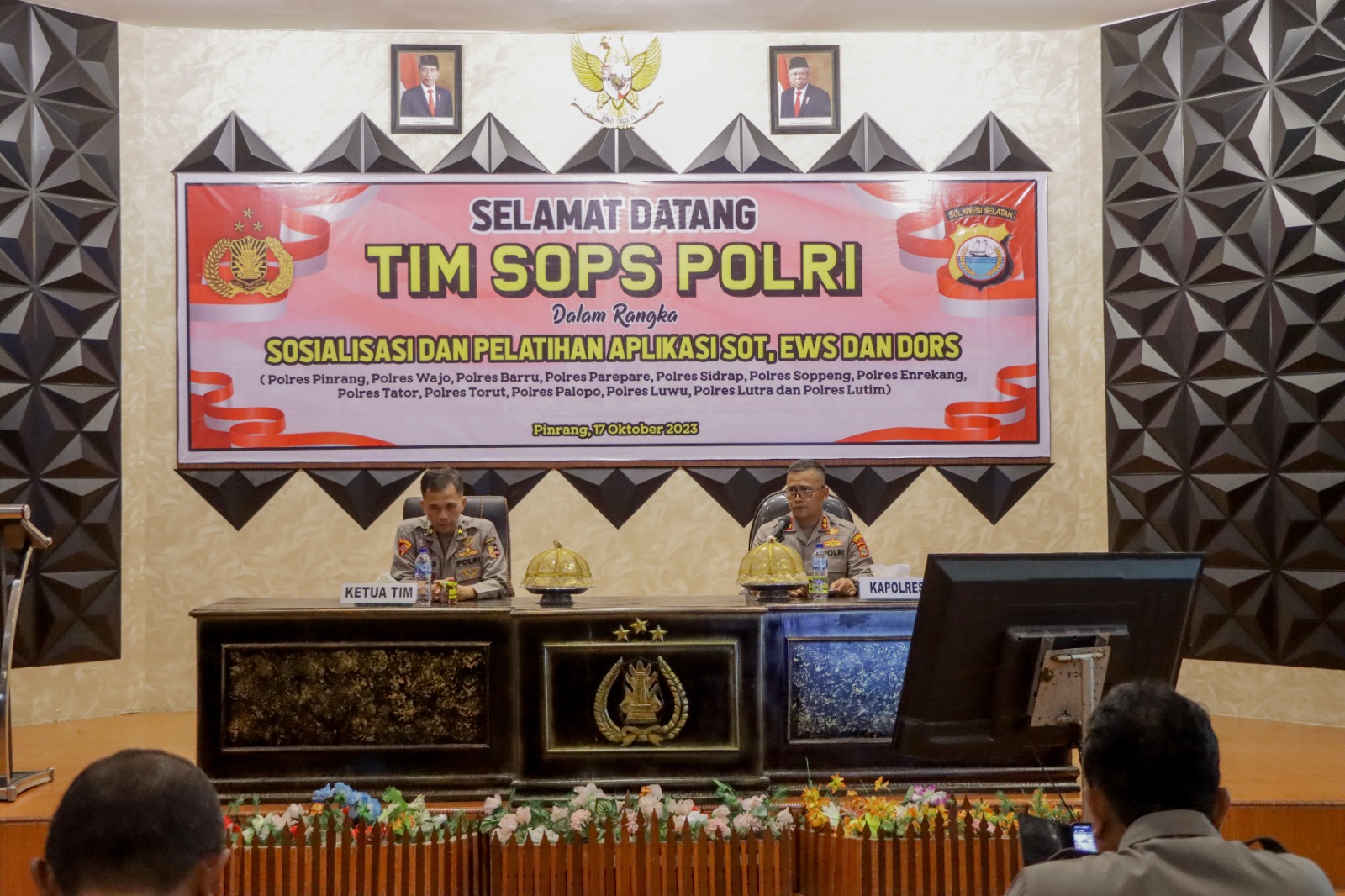 Dalam sambutannya, Kapolres Pinrang AKBP Andiko Wicaksono,S.I.K, mengatakan bahwa tujuan kedatangan tim SOPS Mabes Polri ini adalah untuk melakukan sosialisasi dan pelatihan aplikasi SOT Presisi, DORS, dan EWS tentang persiapan Pemilu 2024.