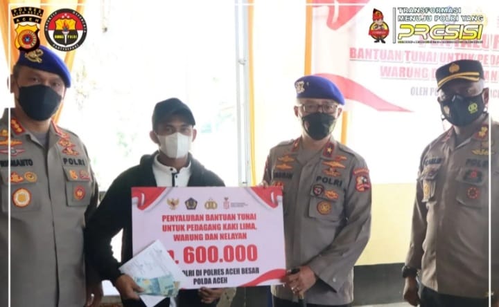 “Selanjutnya Tim dan rombongan menuju tempat dilaksanakannya pembagian bantuan tunai PKL/Warung dan Nelayan yang bertempat disamping gedung Mapolres guna mengecek langsung kegiatan pemberian bantuan terhadap masyarakat yg berhak menerima bantuan tersebut,” Jelas Kapolres Aceh Besar, AKBP. Charlie Syahputra Bustamam. SIK. MH