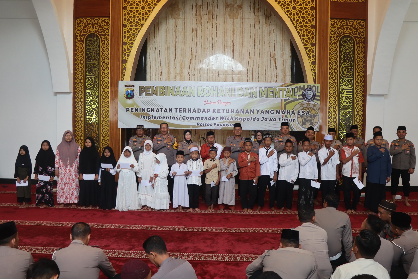 Tingkatkan Iman Dan Taqwa, Polres Pasuruan Gelar Binrohtal Rutin Dan Santunan Anak Yatim