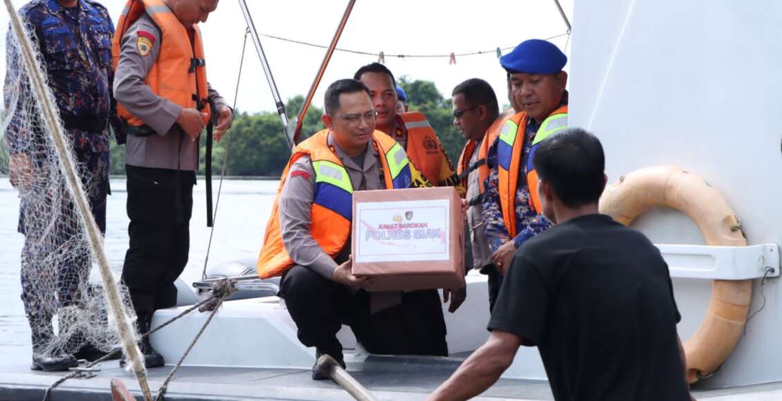 Didampingi Wakapolres Siak Kompol Ade Zaldi dan beberapa pejababat utama Kapolres langsung menyapa dan memberikan himbauan serta bantuan kepada nelayan yang ditemui saat melaksanakan patroli perairan.