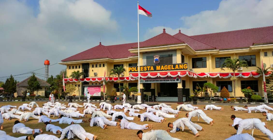 MAGELANG,ikagawanews.id – Dalam rangka meningkatkan kemampuan bela diri sekaligus membina kesehatan fisik personel Polri, Polresta Magelang melaksanakan Ujian Bela Diri Polri secara periodik. Pada Semester II Tahun 2023 kali ini digelar di halaman Mapolresta setempat dan diikuti 800 personel, Kamis (07/09/2023) pagi.